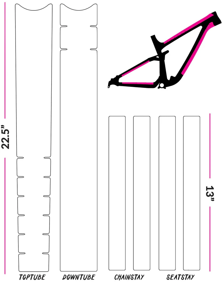 Universal kit designed to fit all bikes and sizes. Comes with 6 easy-to-trim pieces for toptube, downtube, chainstays, and seatstays. Designed to fit XL frames, and is easy to trim down to the desired size.