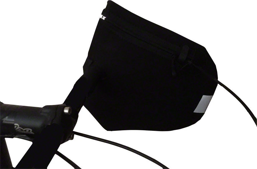 A neoprene pogie designed to allow riders to change positions from hoods to drops without removing hands from the mitts. Internal or external cable routing options.