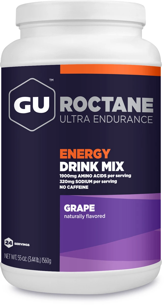 Release the hounds with GU’s version of rocket fuel—Roctane Energy Drink. The proven combination of glucose and fructose is the most easily and rapidly absorbed form of carbohydrate. And, a high electrolyte content is just what your legs crave to fire properly, while 35mg of caffeine stokes your central nervous system, increasing the release of free fatty acids into your bloodstream, and further sparing your limited glycogen stores. Plus, taurine and beta-alanine improve muscle endurance throughout the grinding hours of a road race, marathon, or triathlon. Branched-chain amino acids speed recovery and reduce muscle damage, histidine buffers against acidic byproduct, and of course the delicious flavors go down easy.