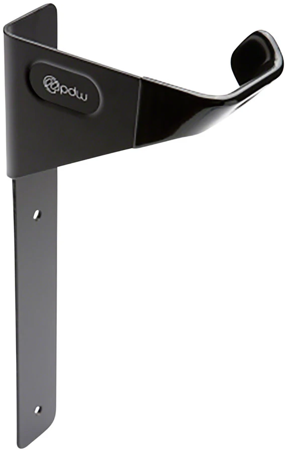 Stylish and functional hook that mounts to your wall and holds the bike by the front wheel.