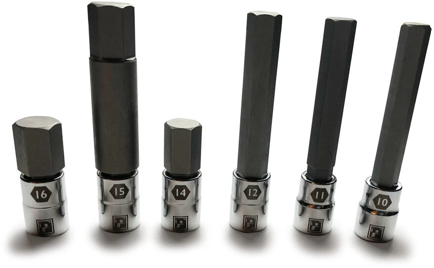 Pedro’s Large Sizes Hex Bit Set is designed to work with our torque wrenches offering ideal and economical coverage of less common large hex wrench sizes.