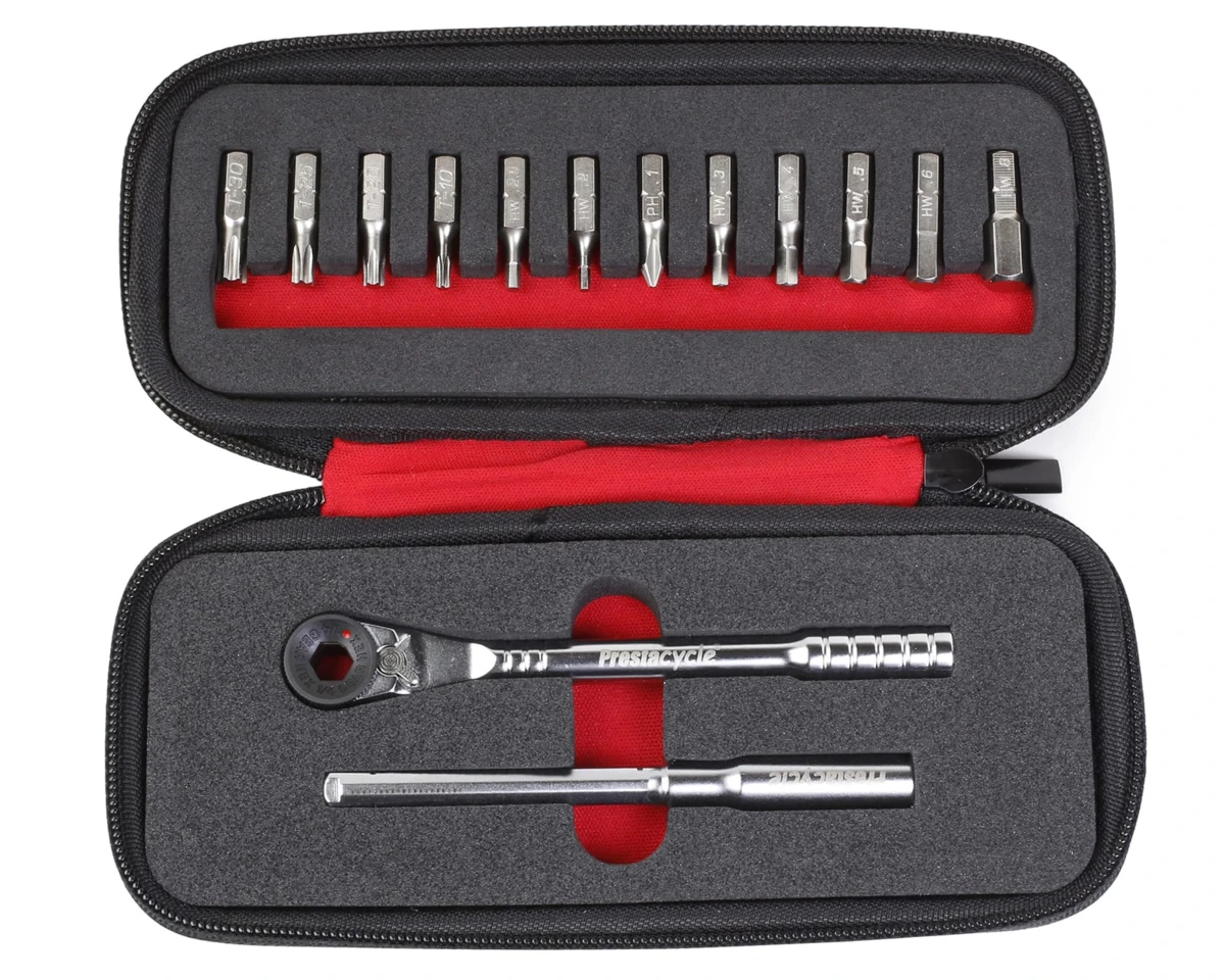 All Prestacycle Professional bits are made with hardened S2 steel, which is much stronger than most hand tools which are made of CRV Steel. S2 steel also resists stretching, preventing rounded edges on the bits that could damage bolts. We apply nickel-plating to all Professional bits to prevent marring to Stainless Steel, Aluminum and Titanium screws and to provide a long-lasting finish. Specific hex bits have micro surfacing to reduce slippage when in use.
