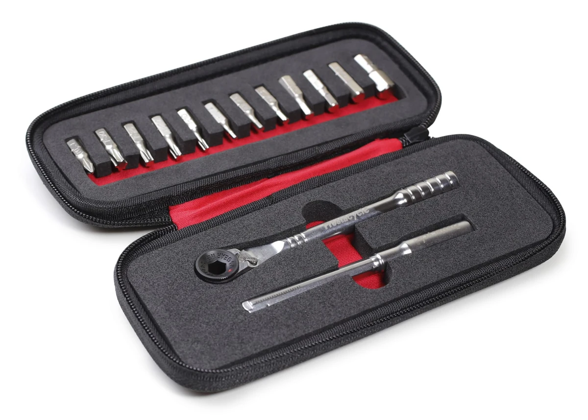 Perfect for protecting your tool and keeping your bits within easy reach. 12 of the most common Bit sizes for bicycles are included inside. Weather-resistant case materials and impact protection make this the perfect case to add to your toolset-to-go.