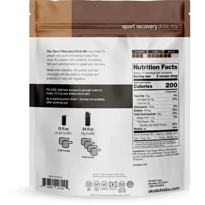 Skratch Labs Sport Recovery Mix is a high calorie food that you can drink. Itโs designed to be a very convenient way for you to consume a lot of delicious calories with an optimal ratio of carbohydrate, protein, fat, and salt to refuel and rehydrate you immediately after your longest and hardest workouts when you donโt have access to a freshly prepared meal from scratch.