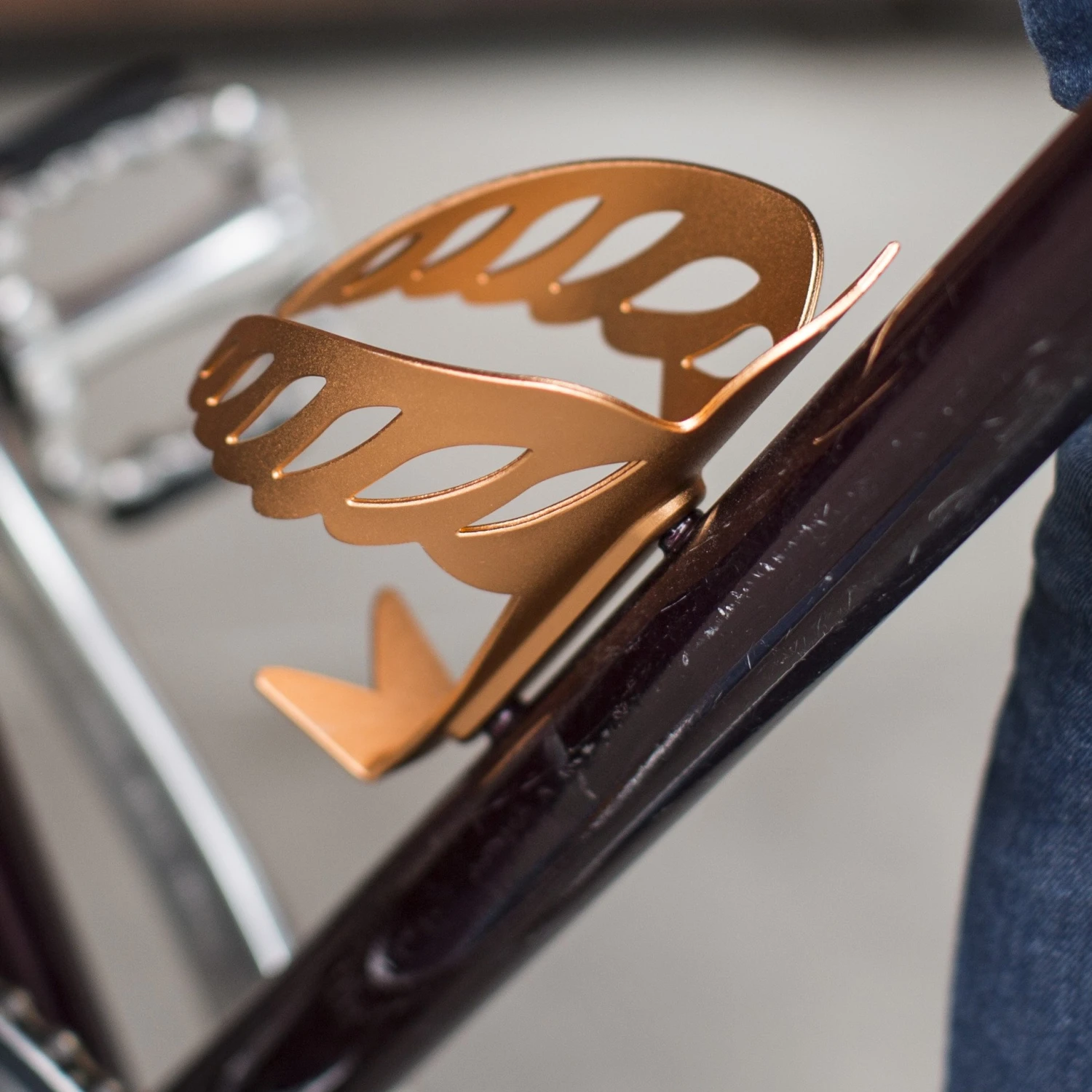 The Portland Design Works Sparrow Cage is made from a single sheet of lightweight 5052 alloy. The Sparrow’s wings fold in to securely cradle your water bottle and the cut outs help keep the cage light. Get a Sparrow and make your ride fly.